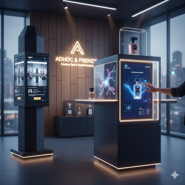 En el competitivo mundo del punto de venta, la pregunta ya no es cómo destacar, sino cómo conectar. En Adhoc & Friends, hemos pasado de fabricar soportes a diseñar experiencias. Hoy, la convergencia entre la Inteligencia Artificial (IA) y la potencia de los motores de videojuegos está redefiniendo lo que entendemos por «expositor». 1. Del Render a la Realidad: IA en el proceso creativo La Inteligencia Artificial no ha venido a sustituir la creatividad humana, sino a potenciarla. En nuestra metodología, utilizamos herramientas de IA para: Optimización de materiales: Analizar qué estructuras de hierro o metacrilato son más eficientes y sostenibles.